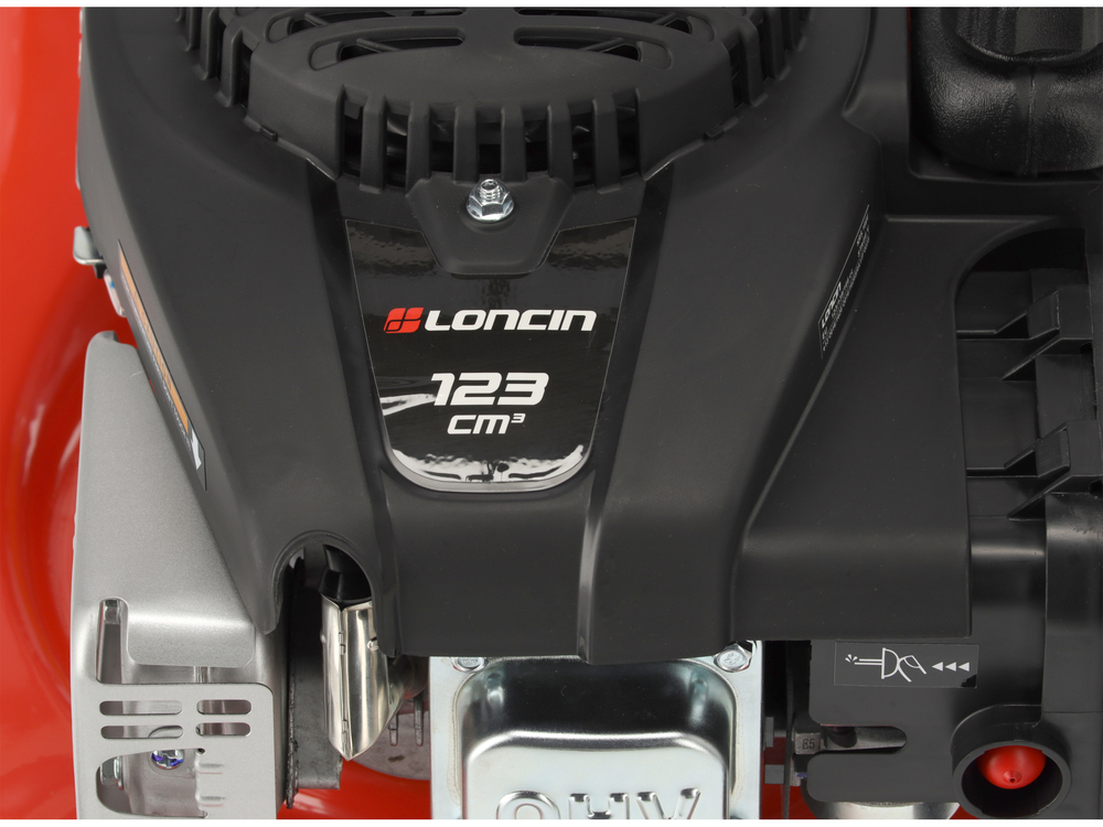 | Opis: | Benzinska kosilica opremljena LONCIN motorom zapremnine 123 cm3, koji pruža veliku snagu i učinkovitost. Radna širina je 41 cm, a stabilna konstrukcija olakšava košnju travnjaka na užim, neravnim i zahtjevnijim područjima, npr. na padinama, uz staze i cvjetne gredice ili u blizini nasada. Visina košnje može se lako podesiti pomoću poluge na 7 razina u rasponu od 25-75 mm. LONCIN motor LC1P65FE-3 tip: benzinski, četverotaktni, s gornjim ventilom zapremnina: 123 cm3 snaga: 2,1 kW maks. brzina vrtnje: 2800 o/min starter: ručni vrsta svjećice: F7RTC vrsta goriva: bezolovni benzin E10 vrsta ulja: SAE 15W-40 kapacitet spremnika goriva: 0,9 litara kapacitet korita za ulje: 0,5 litara širina košnje: 41 cm 7-stupanjsko podešavanje visine košnje u rasponu od 25-70 mm funkcije: stražnje izbacivanje, izbacivanje u košaru mrežasta košara za travu kapaciteta 40 litara metalno kućište ergonomska ručka obložena pjenom promjer kotača: 6" težina: 19,7 kg emisija buke: 96 dB |