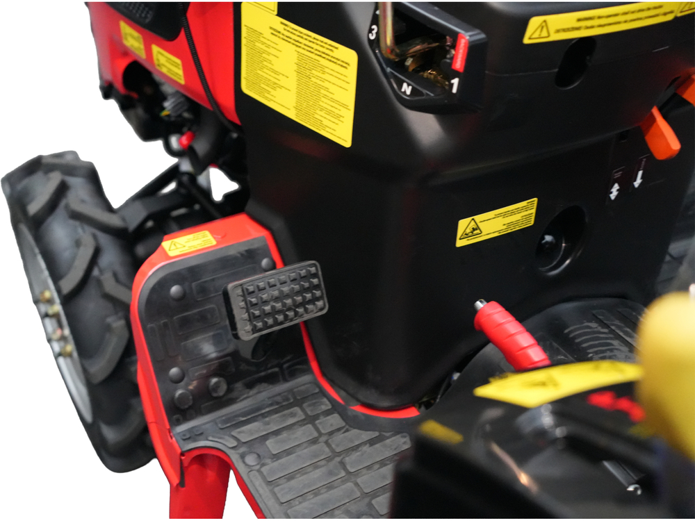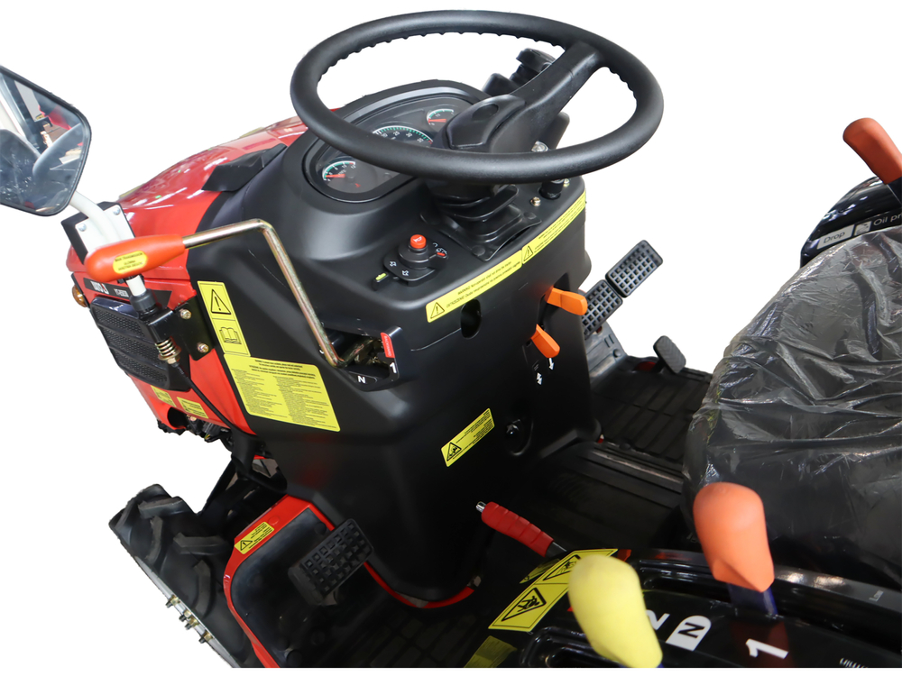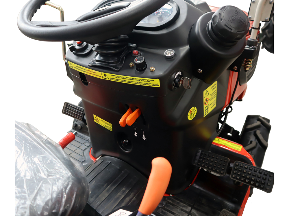 | Opis: | Traktor YATO TYT-85830 je kompaktni poljoprivredni stroj dizajniran za precizno održavanje, poljoprivredu, transport i zadatke koji se obavljaju u skučenim prostorima. Njegove male dimenzije, podesiva širina i mali radijus okretanja doprinose visokoj upravljivosti u voćnjacima, vrtovima, staklenicima, vinogradima i obrađenim poljima. Dizajn, temeljen na jednostavnim i izdržljivim tehničkim rješenjima, osigurava pouzdanost u svakodnevnom radu, dok pogon 4x4 omogućuje stabilne performanse čak i na neravnom i zahtjevnom terenu. Srce modela je 3-cilindrični dizelski motor XY377-C snage 25 KS, koji zadovoljava standarde emisija EURO V, što se prevodi u učinkovit i ekonomičan rad. Mjenjač ima 6 stupnjeva prijenosa za naprijed i 2 stupnja prijenosa za natrag, u kombinaciji s dvobrzinskim kardanskim vratilom, što omogućuje precizno podešavanje radnih parametara vrsti zadatka koji se obavlja - od obrade tla do transporta. Stabilna konstrukcija, odgovarajući razmak od tla i mogućnost podešavanja razmaka kotača povećavaju funkcionalnost stroja, dok sigurnosni sustavi, uključujući ROPS i senzor prisutnosti operatera, poboljšavaju udobnost i kontrolu tijekom upotrebe. Model ima T2 homologaciju za cestu, što omogućuje njegovu legalnu upotrebu na javnim cestama u skladu s važećim propisima. Motor: - tip: XY377-C, dizelski, 3-cilindrični - nazivna snaga: 18,5 kW (25 KS) - zapremina motora: 1132 cm3 - nazivna brzina: 3000 o/min - emisija ispušnih plinova: EURO V (usklađenost s Uredbom EU 2016/1628) - težina motora: 99 kg Pogonski sustav i mjenjač: - pogon: 4x4 (pogon na prednju i stražnju osovinu) - mjenjač: 6 brzina naprijed / 2 brzine unatrag - diferencijal: 2 konusna zupčanika s blokadom diferencijala - spojka: suha, jednostruka ploča - kočnice: mokre, disk PTO osovina: 2 brzine, rotacija u smjeru kazaljke na satu: 635/1116 o/min Dimenzije i težine: - ukupna duljina: cca. 2500 mm - ukupna širina: 970-1200 mm (podesivo) - visina: 1807 mm - međuosovinski razmak: 1270 mm - razmak od tla: 285 mm - vlastita težina: 620 kg (bez utega), 668 kg (s utezima) - maksimalna dopuštena težina: 819-834 kg Kotači i šasija: - prednje gume: 5.00-12 (zračnice) - stražnje gume: 8.00-16 (bez zračnica) - razmak kotača: - prednji: 750 mm (standardno), 960-1200 mm (podesivo) - stražnji: 760 mm (standardno), 960-1200 mm (podesivo) - radijus okretanja: 1700 mm (unutarnji) / 2300 mm (vanjski) Brzine vožnje: Niski stupanj prijenosa: 1. stupanj prijenosa: 0.74 km/h 2. brzina: 1,51 km/h 3. brzina: 2,65 km/h Unatrag: 1,48 km/h Visoki raspon: 1. brzina: 4,17 km/h 2. brzina: 8,53 km/h 3. brzina: 15 km/h Unatrag: 8,35 km/h Dodatna oprema: - stražnja vučna kuka i mogućnost spajanja poljoprivrednih strojeva - kardansko vratilo s dvije brzine - mogućnost podešavanja vozne staze za različite uvjete na terenu - podesivi položaj sjedala - senzor prisutnosti vozača TYT-85830 je svestran, kompaktan poljoprivredni traktor čvrste konstrukcije i vrlo dobrih radnih parametara. Zahvaljujući pogonu 4x4, podesivoj geometriji i T2 homologaciji, prikladan je i za terenski rad i za transport. |
